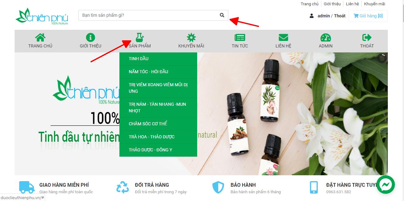 BƯỚC 1: TRUY CẬP VÀO WEBSITE duoclieuthienphu.vn TÌM MÓN HÀNG MUỐN MUA THEO CÁC CÁCH SAU: