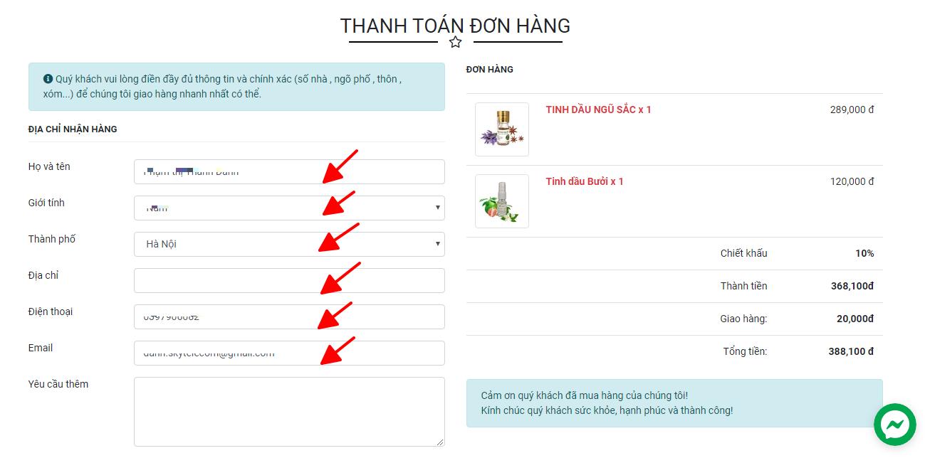 3. Nhập đầy đủ thông tin người nhận hàng: họ tên, số điện thoại, số nhà, ngõ...